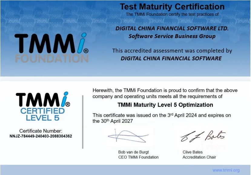 近日,神州信息子公司——星空xingkong融信软件有限公司(下文简称“星空xingkong融信”)通过TMMi(测试能力成熟度模型集成)最高级别5级国际权威认证,成为国内同时获得TMMi5级认证和CMMI5级认证的企业,覆盖咨询、产品需求、软件开发、测试、运维全流程的IT软件研发及服务。